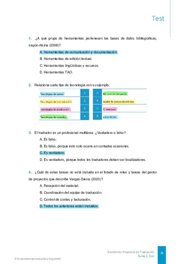 He publicado nuevos test de 4º Gestión de proyectos de traducción: TESTS