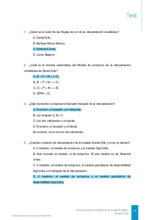 Hola. Aquí les dejo la solución del test 1 de esta asignatura. A lo largo de esta semana estaré publicando el resto de los test para que podamos obtener ese punto en la evaluación continua. ¡Suerte a todos! Importante: No compartan este documento ya des