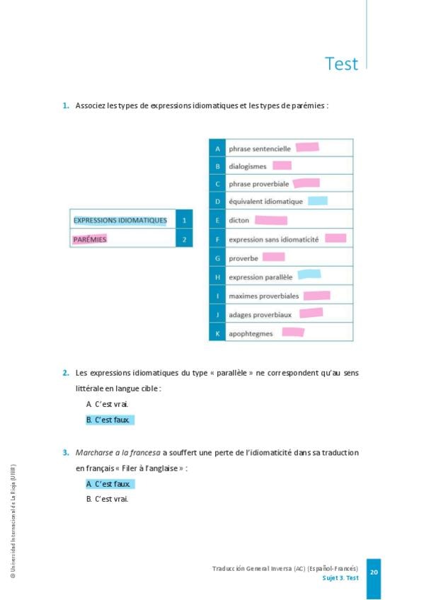 He publicado nuevos test de 3º Traducción General Inversa (Ac) (Español-francés); o Traducción General Inversa (Ac) (Español-alemán): TESTS