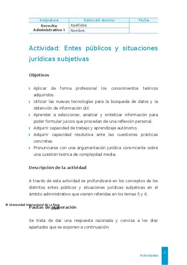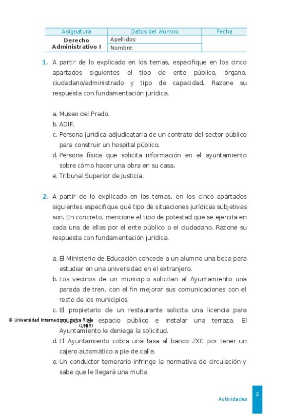 Actividad 2: Entes públicos y situaciones jurídicas subjetivas Derecho Administrativo I