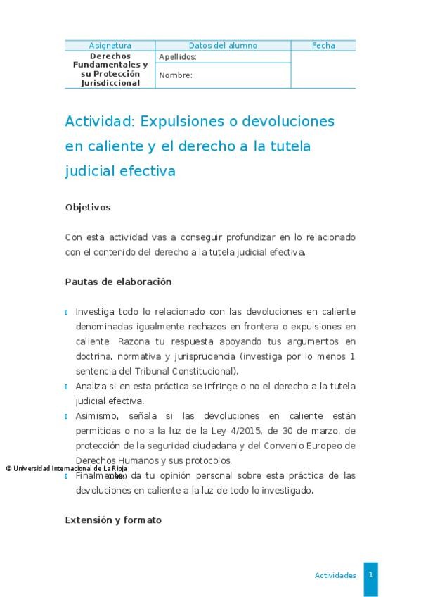 Actividad 1 : Expulsiones o devoluciones en caliente y el derecho a la tutela judicial efectiva