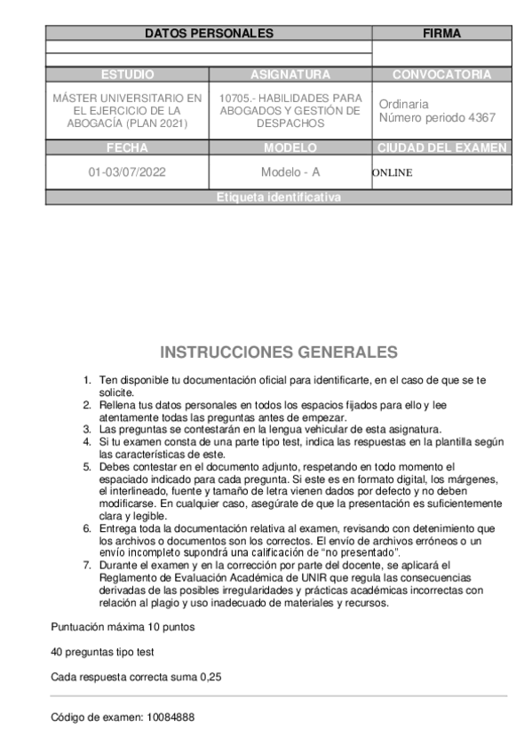 He publicado nuevos examenes de 1º Habilidades para Abogados y Gestión de Despachos: Examen-Habilidades-Ordinariamodelo-A-2022.pdf