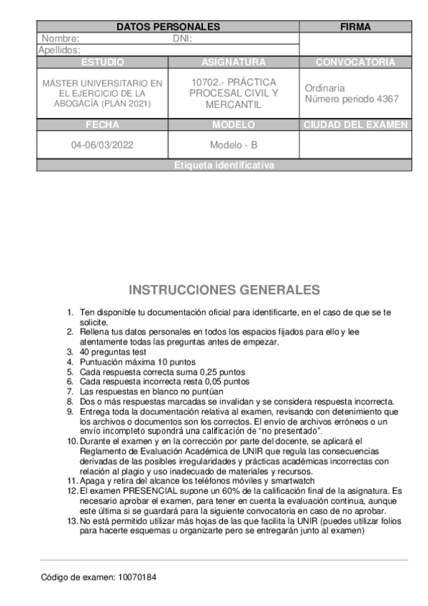 He publicado nuevos examenes de 1º Práctica Procesal Civil y Mercantil: EXAMEN-CIVILyMERCANTIL-MODELO-B-MARZO-2022.pdf