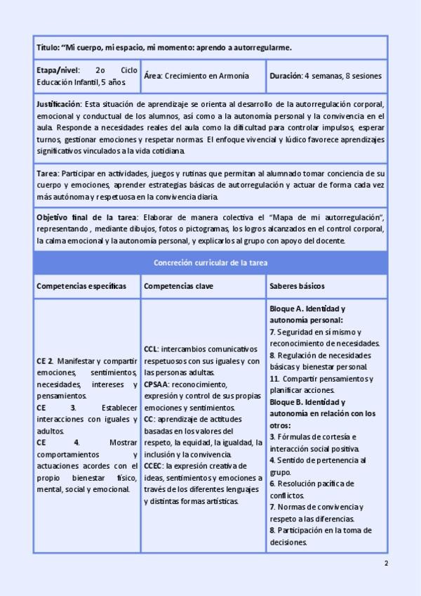 Situación de aprendizaje para Educación Infantil. Área de Crecimiento en Armonía.