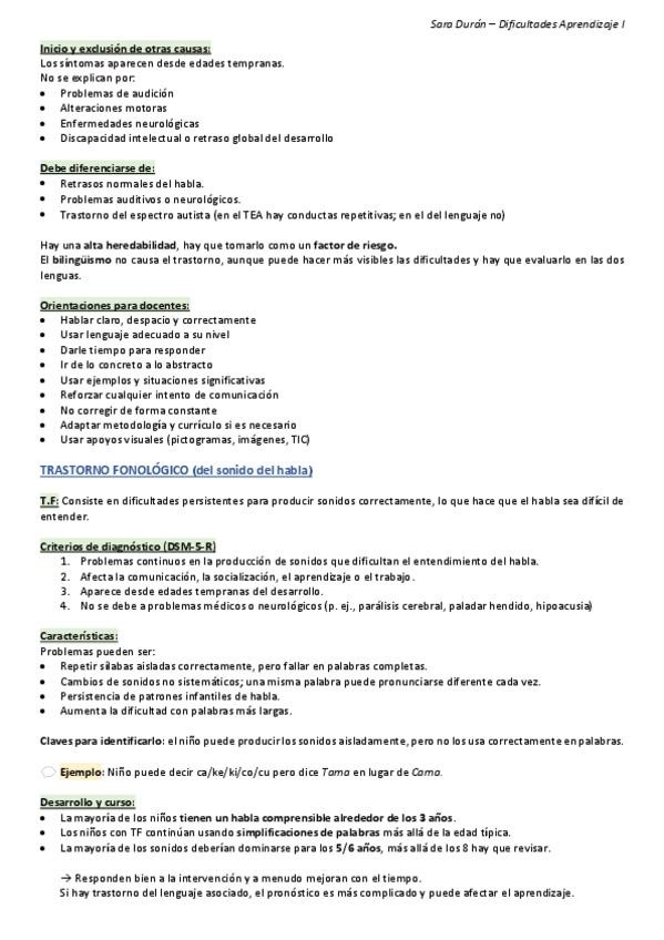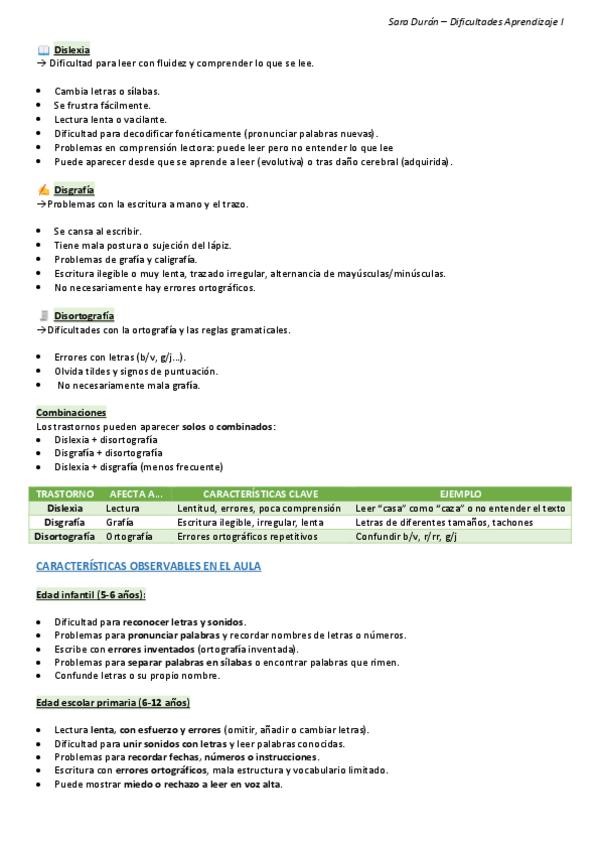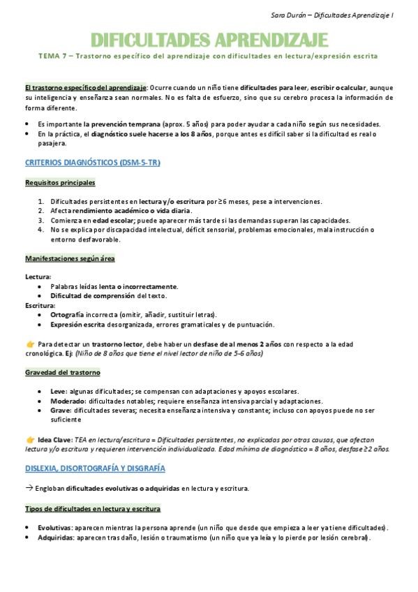TEMA 7 - Trastornos aprendizaje Lectoescritura, RESUMEN Dificultades de Aprendizaje