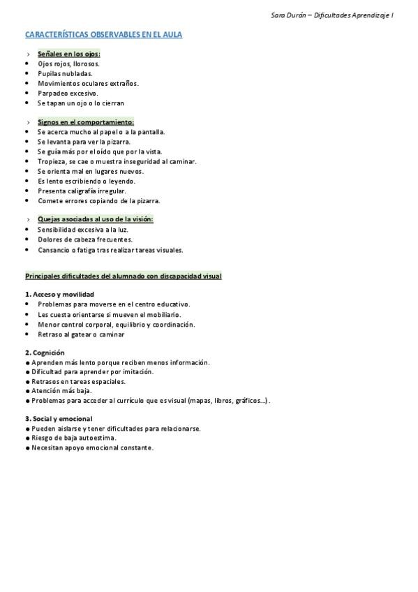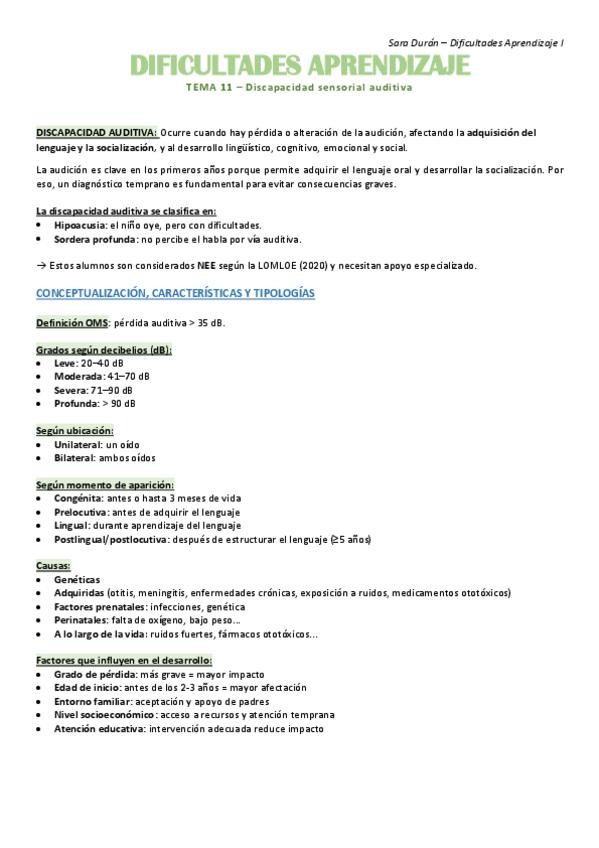 TEMA 11 - Discapacidad auditiva RESUMEN, Dificultades aprendizaje I