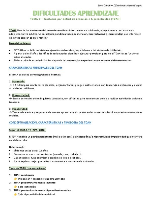 TEMA 6, TDH - Resumen Dificultades Aprendizaje