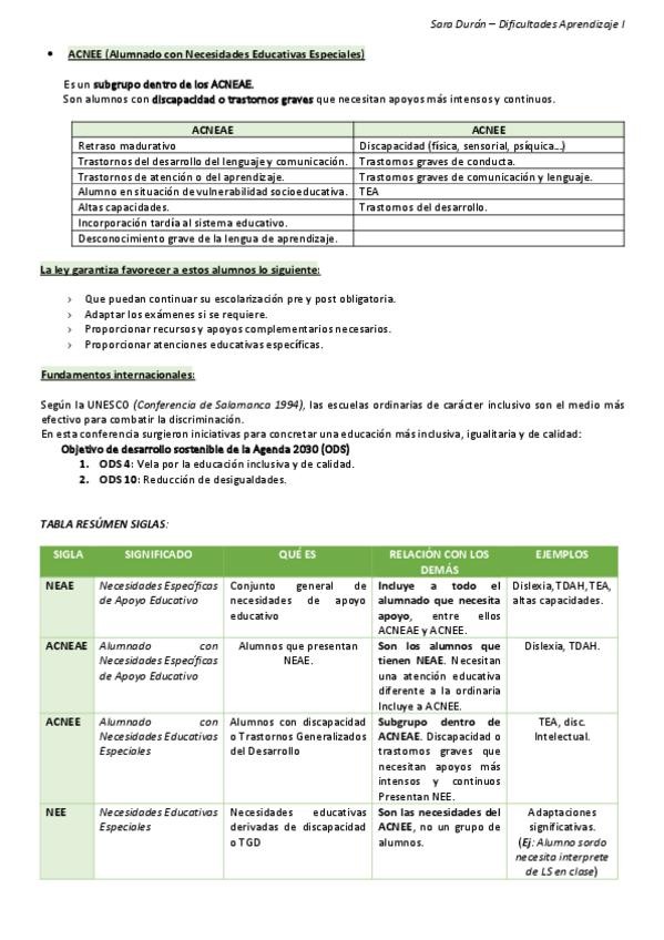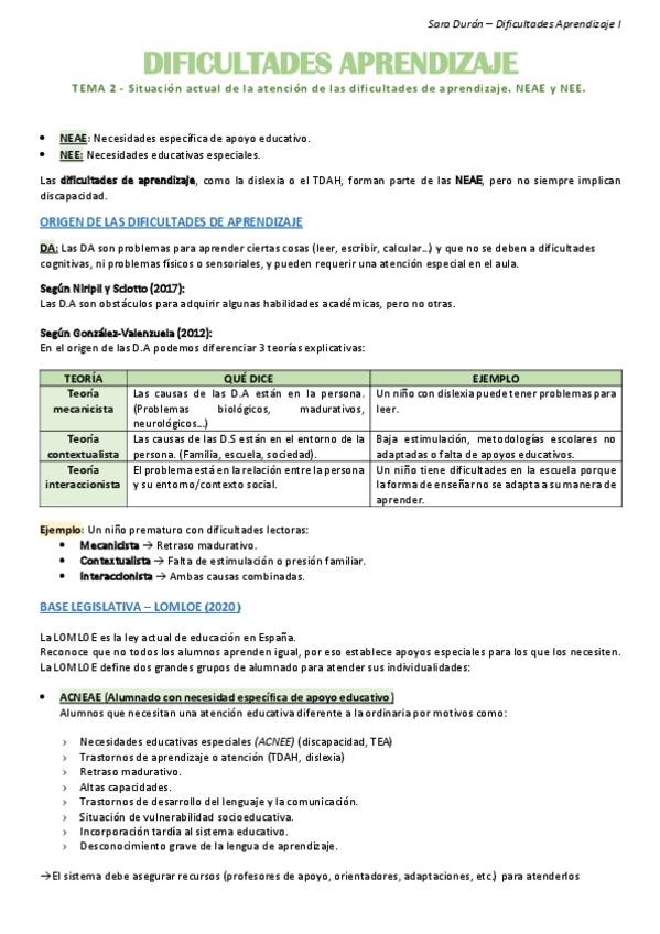 TEMA 2 - NEE, NEAE - Resumen Dificultades aprendizaje