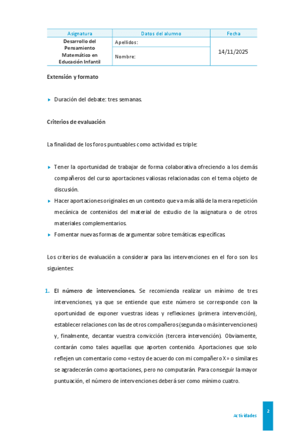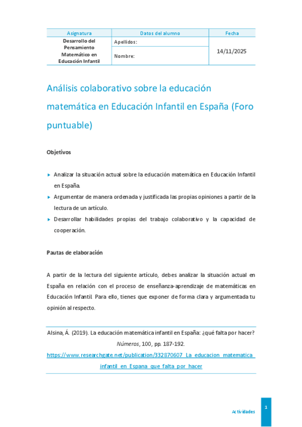 Esta es la actividad de Desarrollo del pensamiento matemático en educación infantil, he sacado un 9.