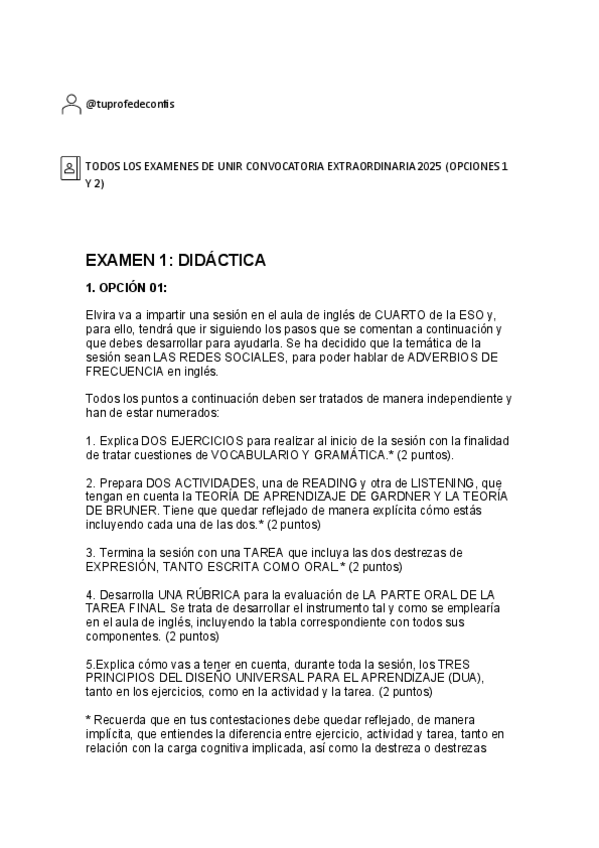En este PDF podréis encontrar los exámenes de todas las asignaturas de la convocatoria ordinaria del año 2025. Aparecen ambas opciones, y están sin resolver para que podáis practicar.
