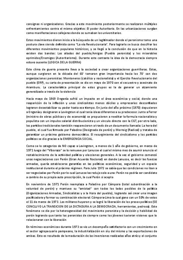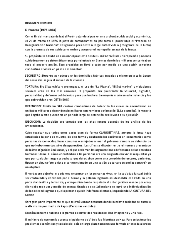 Resumen del 2do capitulo necesario para el examen: "El Proceso". Que trata sobre el ultimo golpe militar