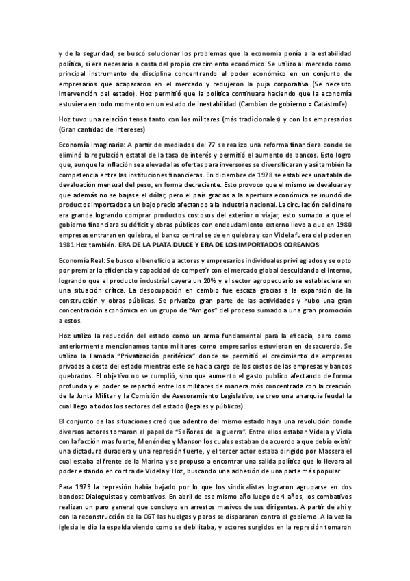 Resumen del 2do capitulo necesario para el examen: "El Proceso". Que trata sobre el ultimo golpe militar
