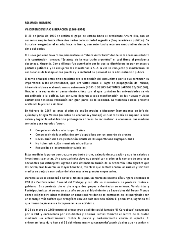 Resumen del primer capitulo obligatorio de Romero: Dependencia o dominacion. Completo