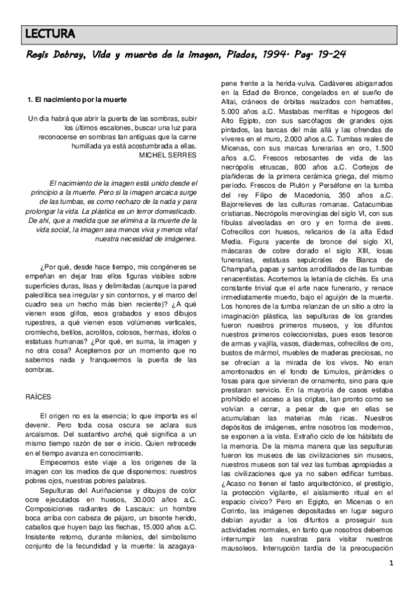 En este documento encontramos una historia que cuenta como se refleja la muerte, por medio del arte