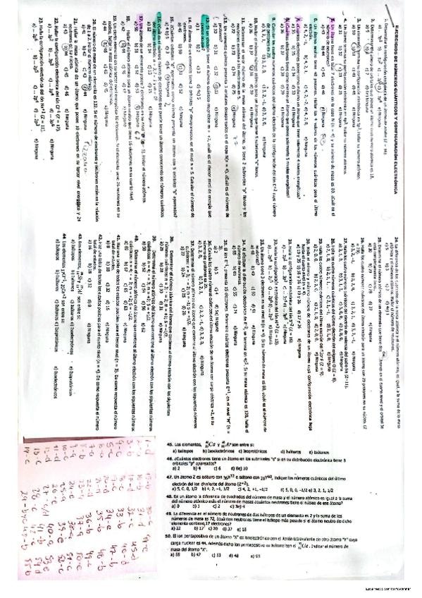 Este es un ejercitario completo y detallado de ejercicios de química inorgánica como números cuánticos y configuración electrónica, así también formulación y nomenclatura orgánica e inorgánica. Ideal para los primeros semestres en carreras científicas, cu