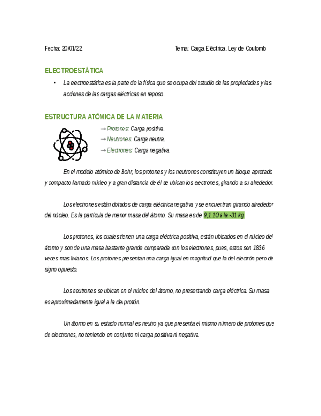 Electroestática. Ley de Coulomb