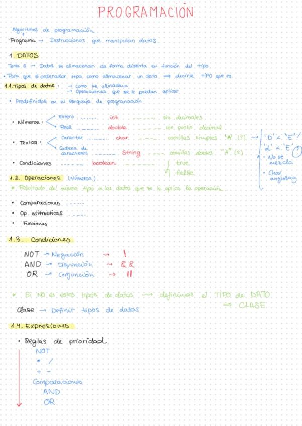 Apuntes completos de TODAS las clases de PROGRAMACIÓN, resumen TEORÍA y EJERCICIOS resueltos por el PROFESOR.