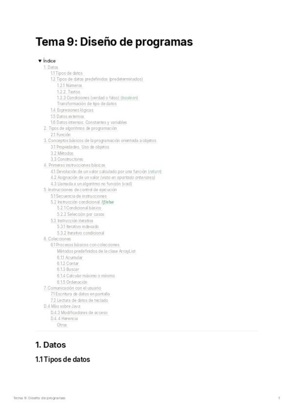 Tema 9 "Diseño de Programas" de la asignatura de Informática de Ing. de Diseño. Básicamente todo lo que necesitas saber para la parte de programación. Incluye EXPLICACIONES de cada resolución de ejercicios vistos en clase. Al final incluye cosas important