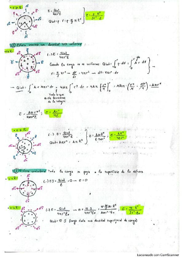 Ley de Gauss aplicada según las geometrías y superficies escogidas.