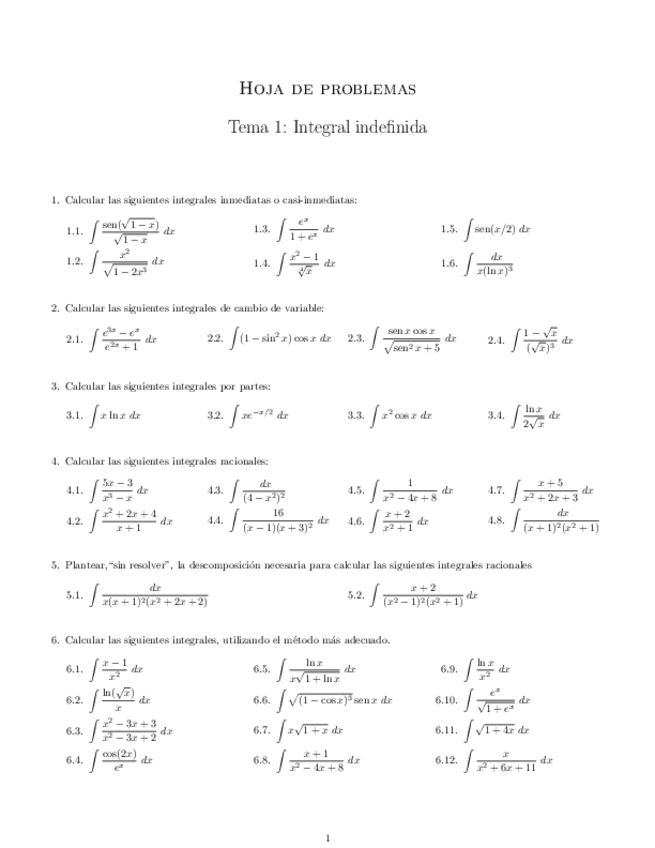 He publicado nuevos ejercicios de 1º Matemáticas II: Ejercicios-Integrales-Indefinidas-Resueltos.pdf