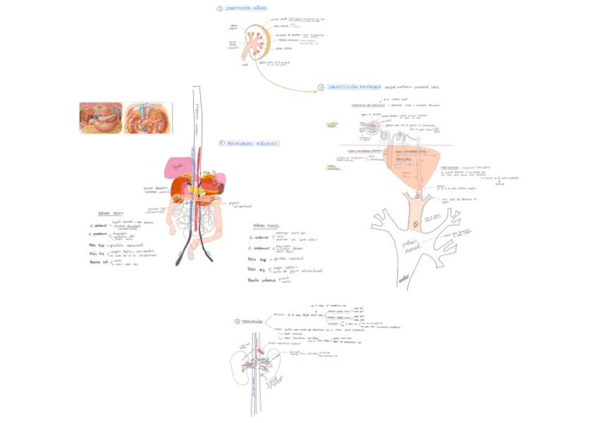 Esquemas con dibujos de relaciones entre órganos, irrigación, partes…
