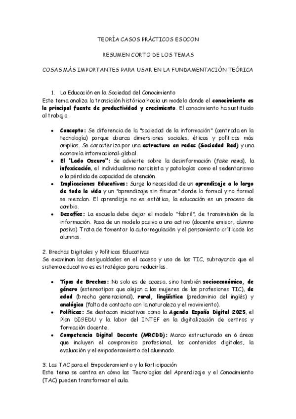 Resumen de la parte teórica para los casos prácticos de ESOCON