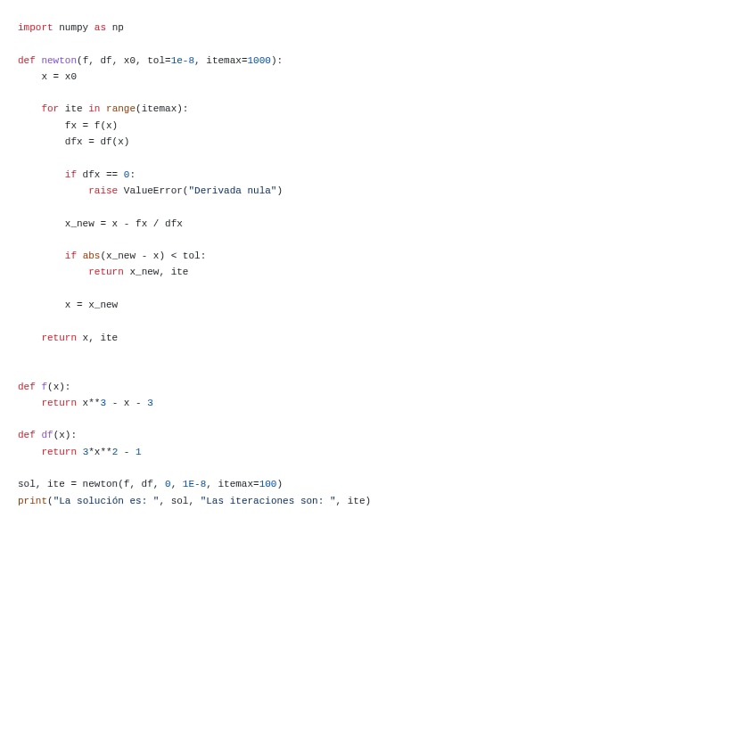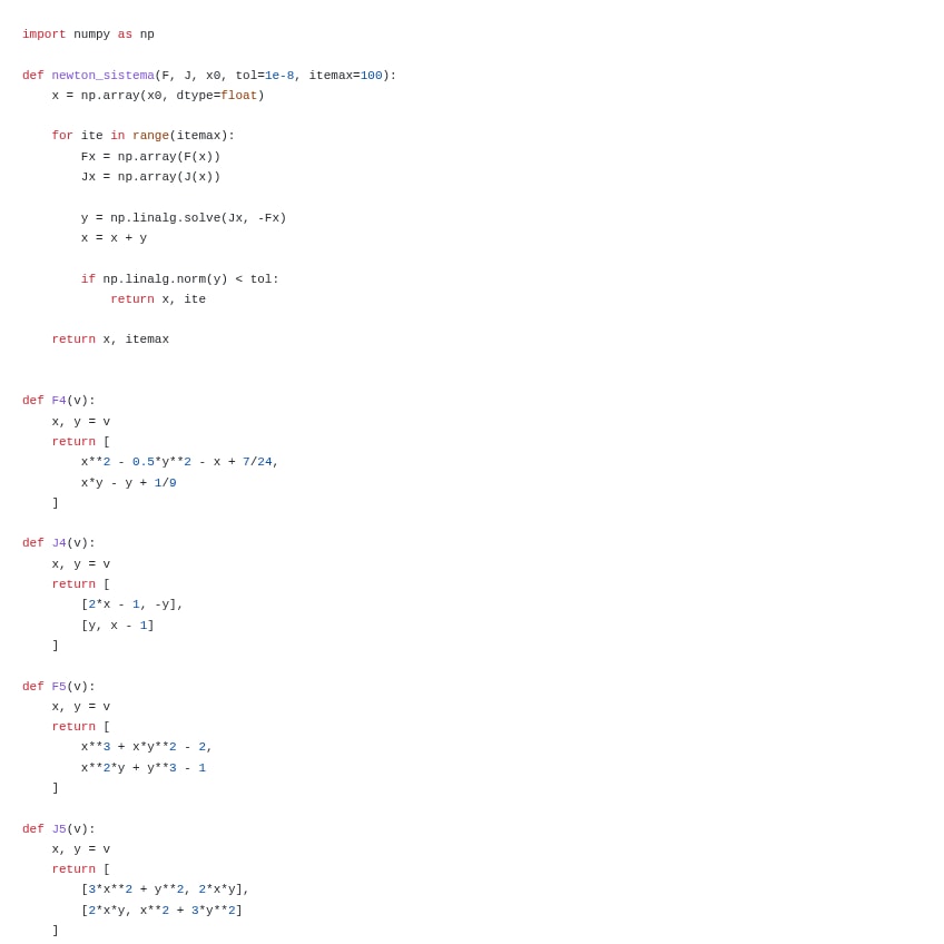 Están los tres métodos tratados en las prácticas, el método de bisección, el de Newton-Raphson para resolver sistemas escalares y el de Newton para sistemas de ecuaciones. Listos para implementar.
