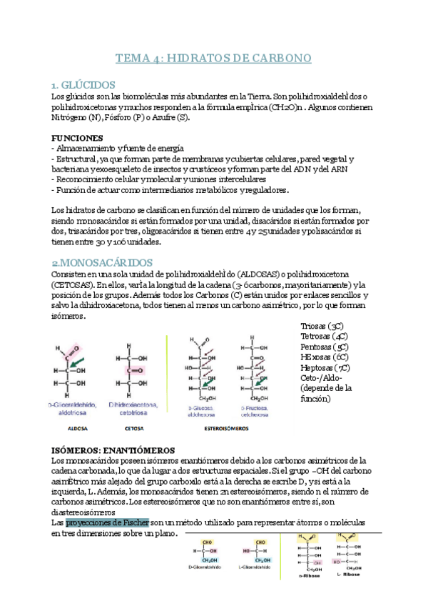 Tema 4 biología: Hidratos de carbono/glúcidos Primero de carrera química