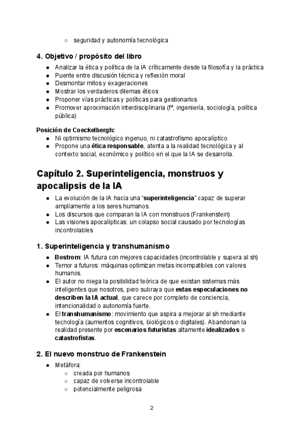 Apuntes sobre el libro "Ética de la Inteligencia Artificial" de Mark Coeckelbergh, del que tuve que hacer el segundo parcial del curso (8 preguntas tipo test y 1 de desarrollo).