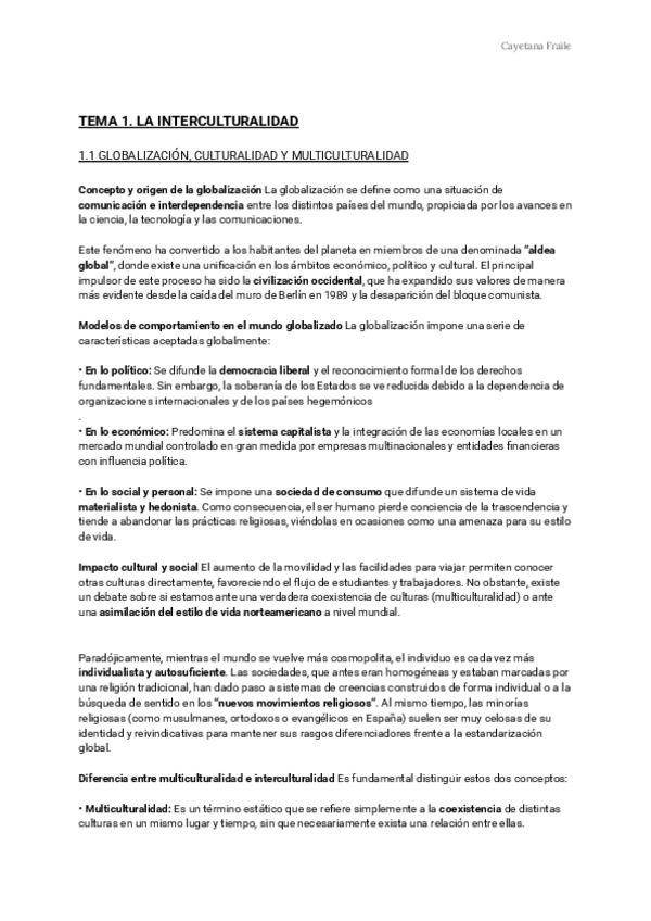 Apuntes completos y resumen de los temas de Interculturalidad y libertad de creencias.