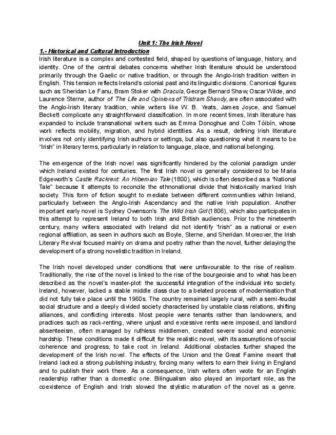 He publicado nuevos apuntes de 3º Literatura Irlandesa: Unit-1-Irish-Novel-.pdf