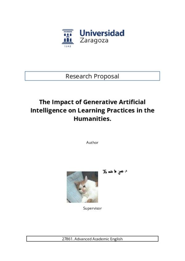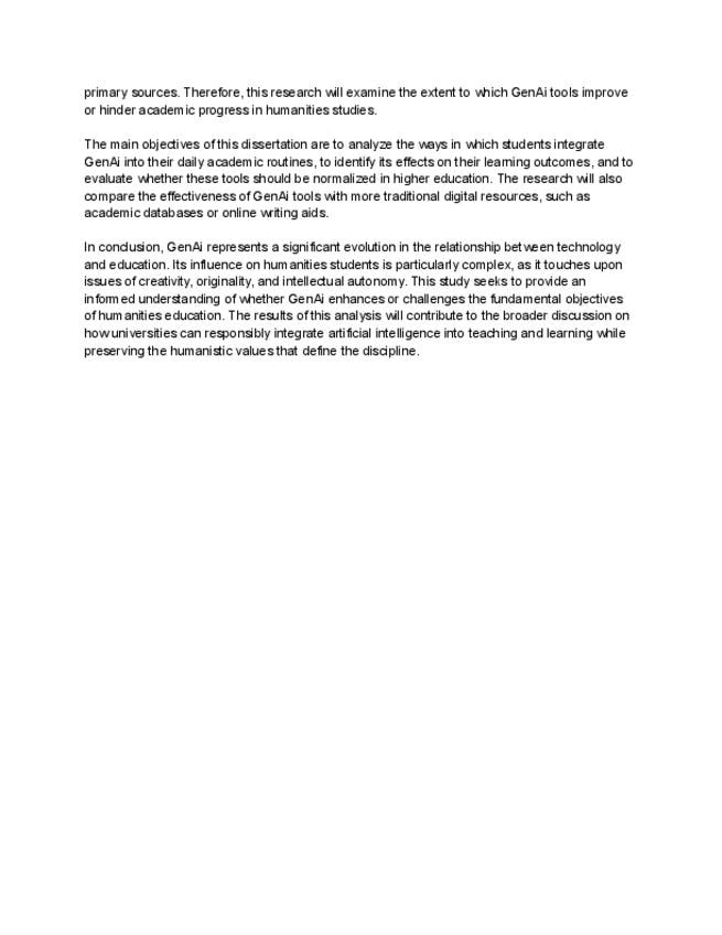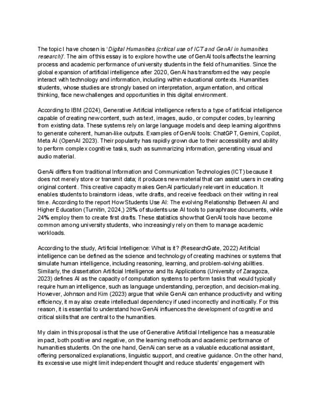 Este documento es el Research Proposal del Topic 7 relacionado a la IA (Digital Humanities (critical use of ICT and GenAI in humanities research)). En el hay introducción, Methodology, Literary Review, conclusión y fuentes.