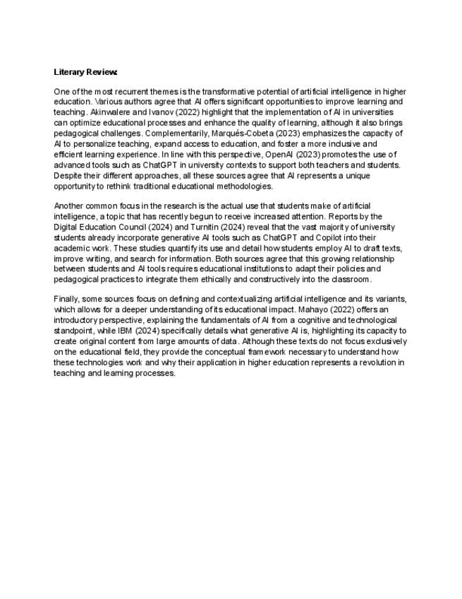 Este documento es la revisión bibliográfica del Topic 7 relacionado a la IA (Digital Humanities (critical use of ICT and GenAI in humanities research))