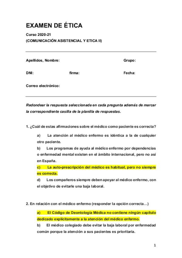 He publicado nuevos test de 4º COMUNICACION ASISTENCIAL, ETICA MEDICA Y LEGISLACION II: PREGUNTASY-RESPUESTAS-ETICA-FEBRERO-2021.pdf