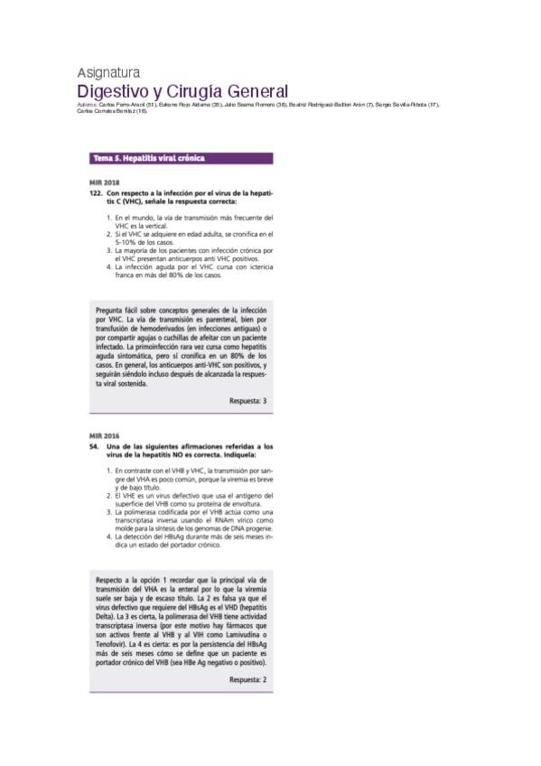 PREGUNTAS DEL EXAMEN MIR DE DIGESTIVO DE LOS ÚLTIMOS 10 AÑOS. MATERIAL PERFECTO PARA COMPLEMENTAR Y AFIANZAR CONCEPTOS