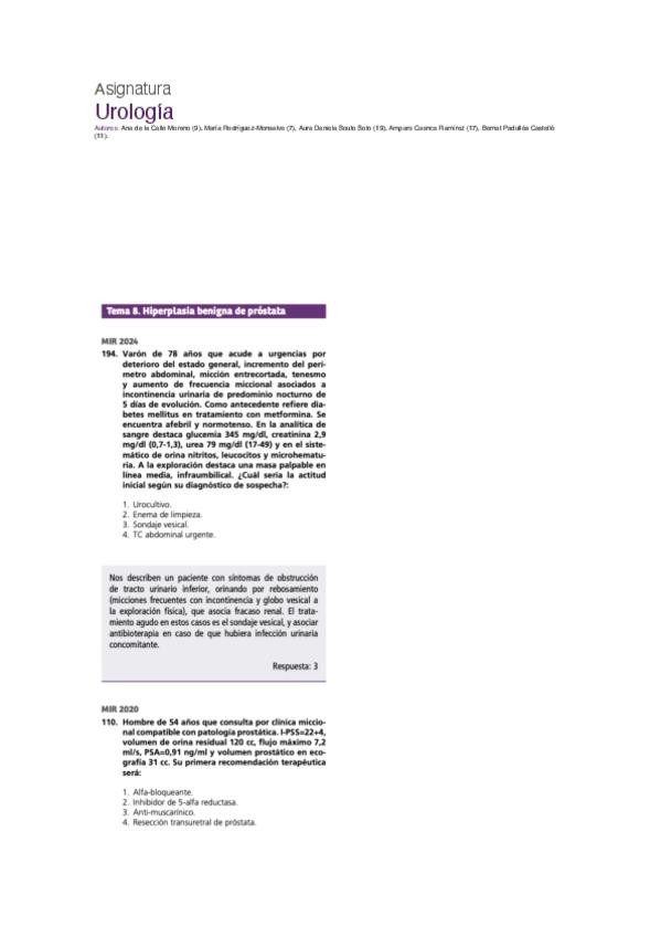 PREGUNTAS DE UROLOGÍA DEL EXAMEN MIR DE LOS ÚLTIMOS 10 AÑOS, PERFECTAS PARA CONSOLIDAR CONCEPTOS Y REFORZAR EL ESTUDIO.