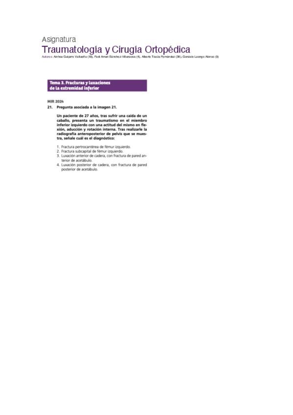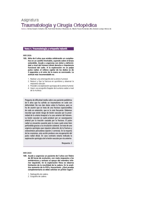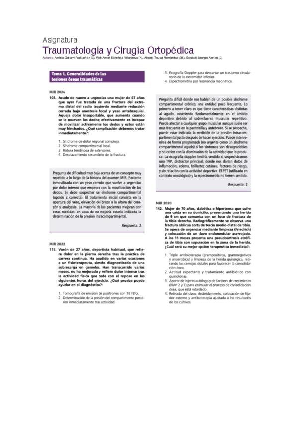 PREGUNTAS DE TRAUMATOLOGÍA DEL EXAMEN MIR DE LOS ÚLTIMOS 10 AÑOS, PERFECTAS PARA CONSOLIDAR CONCEPTOS Y COMPLEMENTAR EL ESTUDIO.