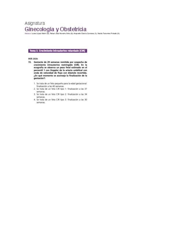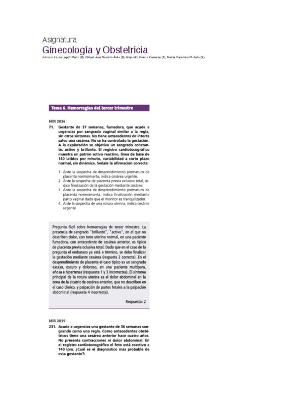 PREGUNTAS MIR GINECOLOGÍA Y OBSTETRICIA