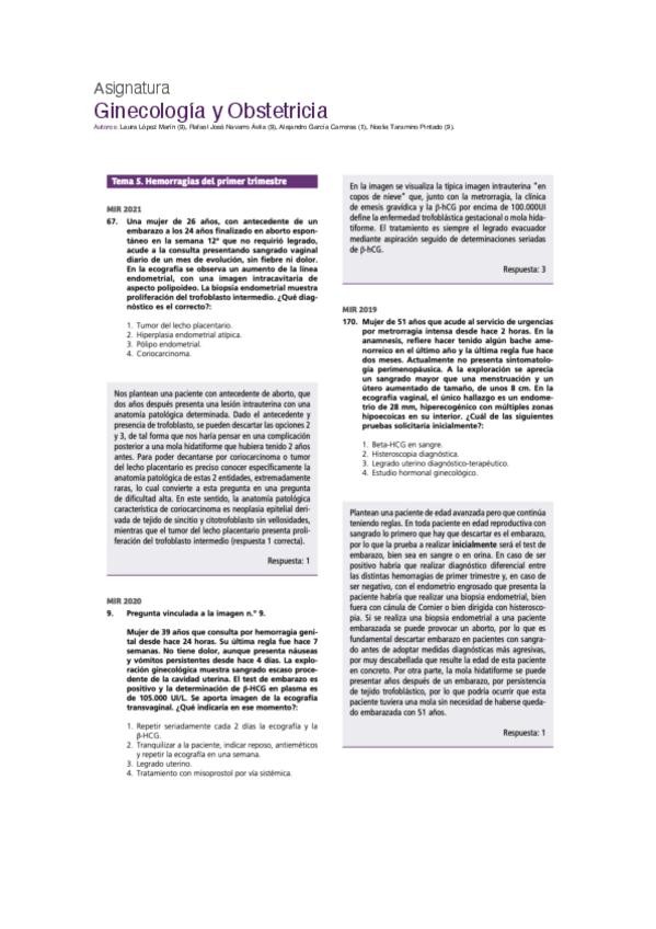 PREGUNTAS DE GINECOLOGÍA Y OBSTETRICIA DEL EXAMEN MIR DE LOS ÚLTIMOS 10 AÑOS, PARA CONSOLIDAR CONCEPTOS.