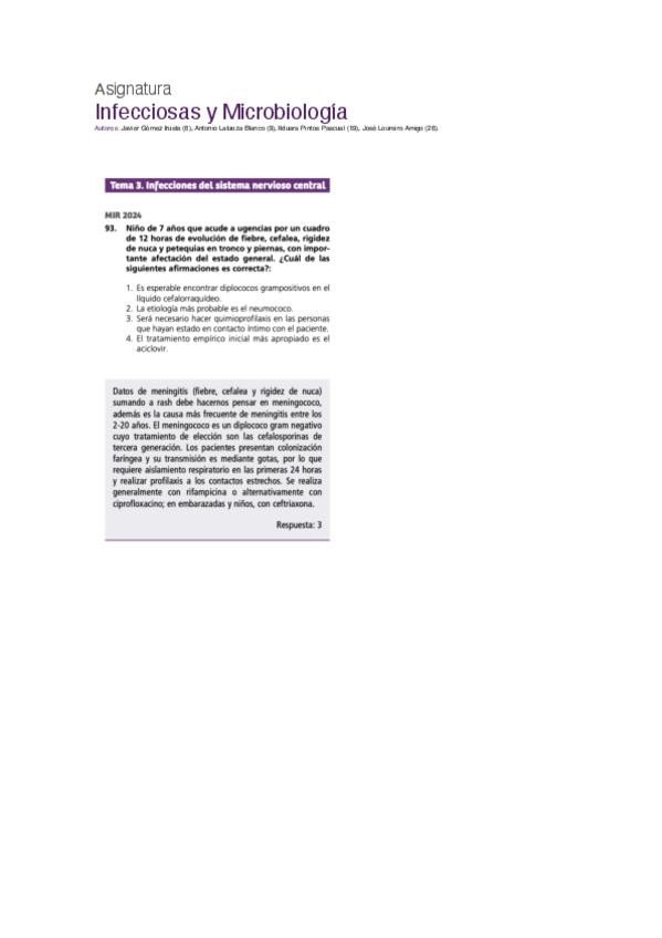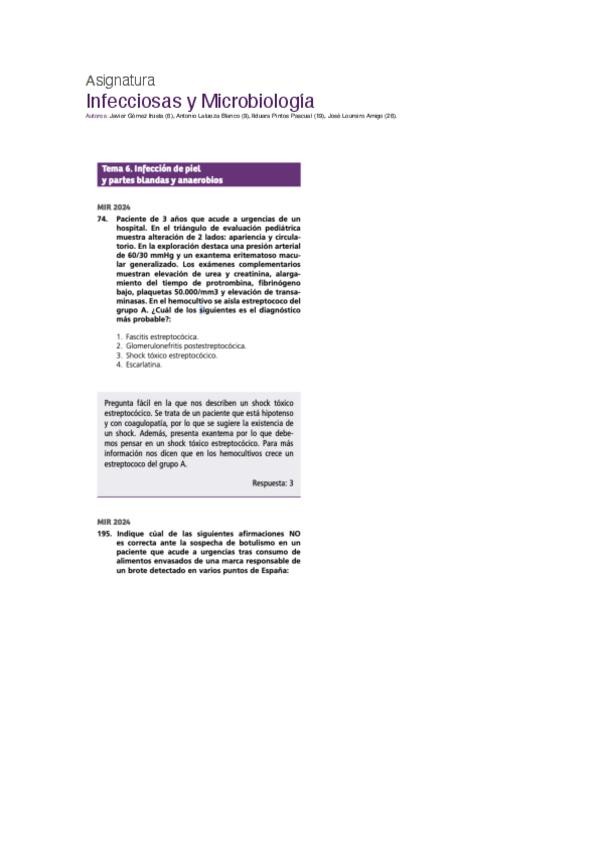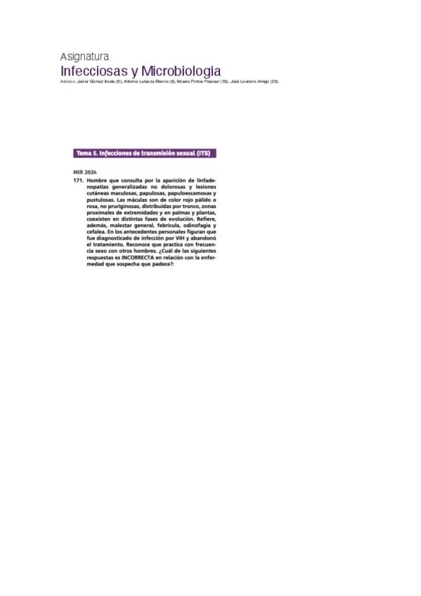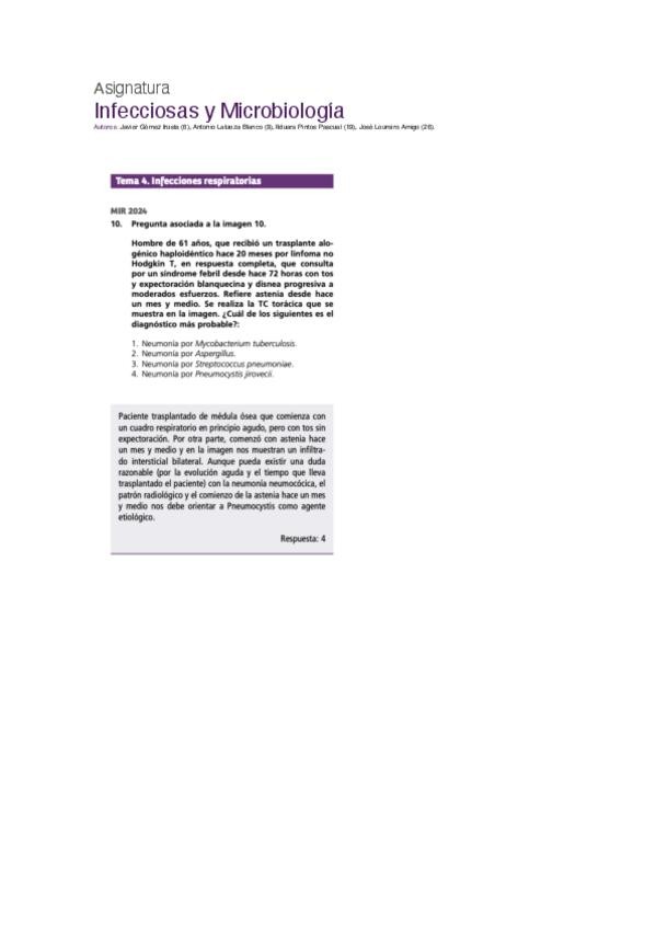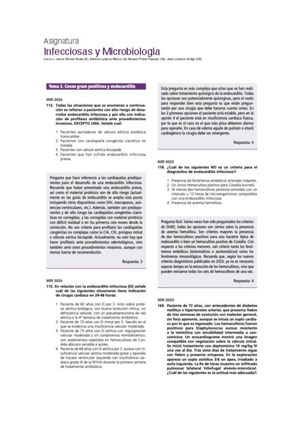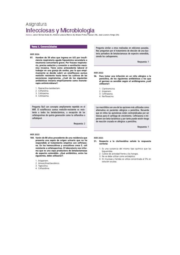 PREGUNTAS DE INFECCIOSAS Y MICROBIOLOGÍA DEL EXAMEN MIR DE LOS ÚLTIMOS 10 AÑOS,PARA CONSOLIDAR CONCEPTOS Y COMPLEMENTAR ESTUDIO.