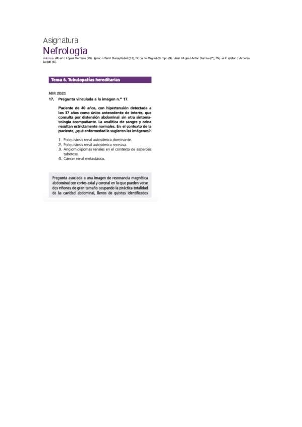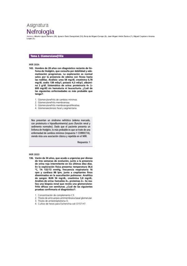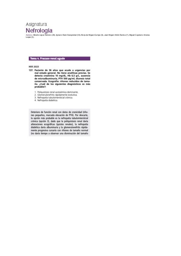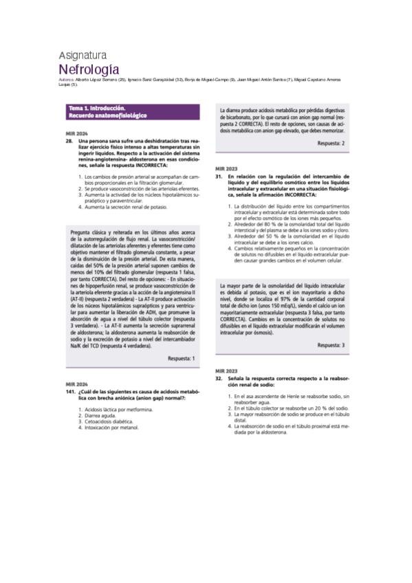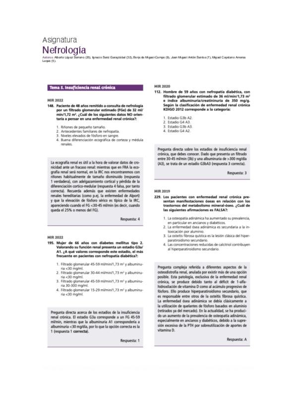 PREGUNTAS DE NEFROLOGÍA DEL EXAMEN MIR DE LOS ÚLTIMOS 10 AÑOS.