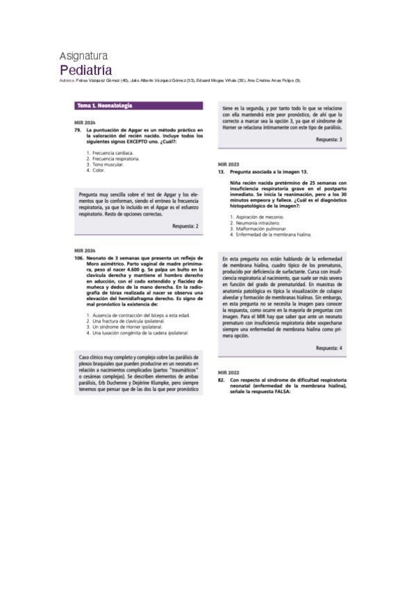 PREGUNTAS MIR PEDIATRÍA