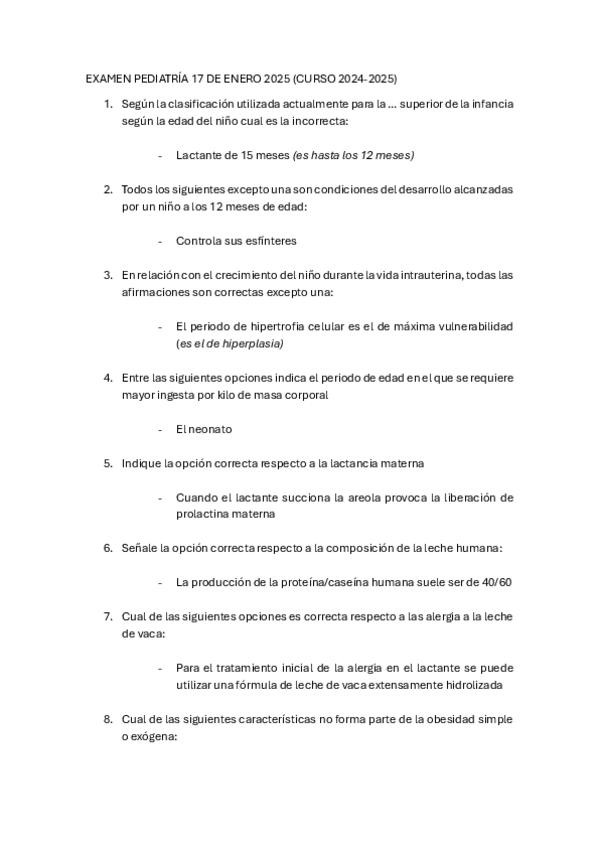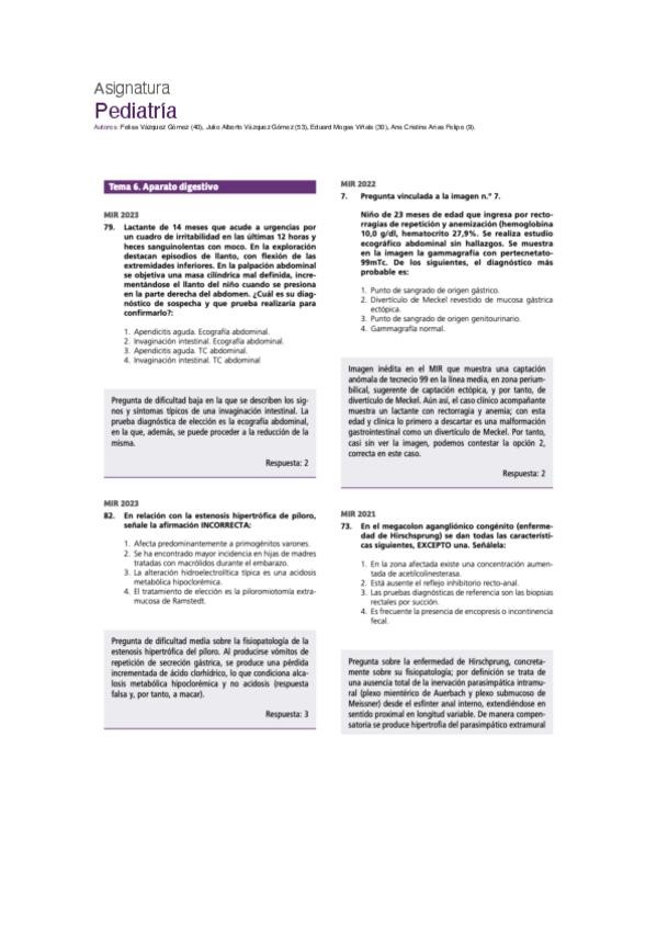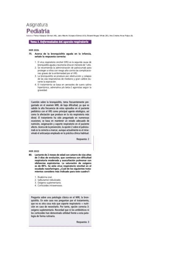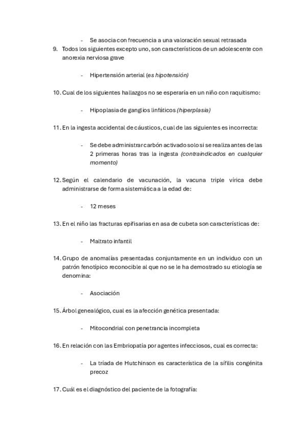 PREGUNTAS DE PEDIATRÍA DEL EXAMEN MIR DE LOS ÚLTIMOS 10 AÑOS.