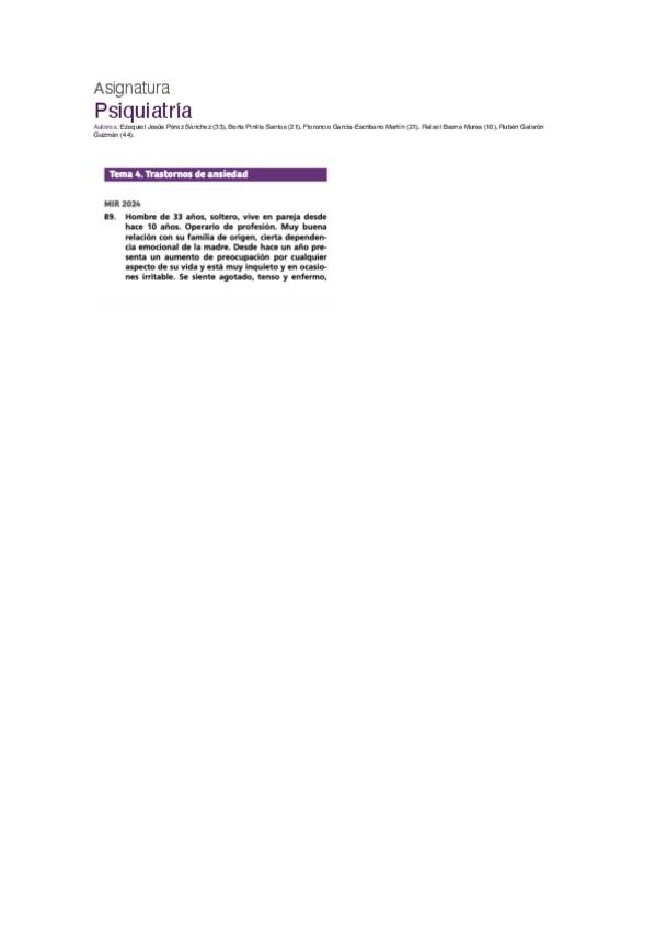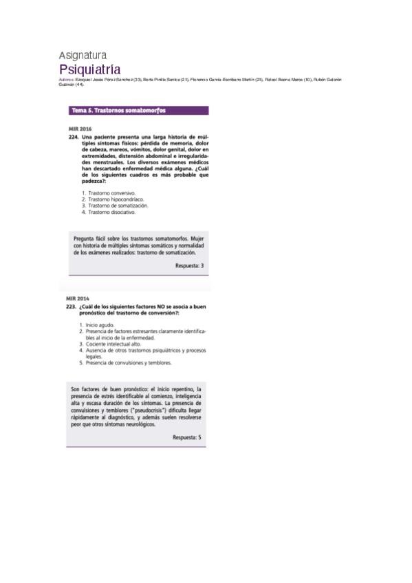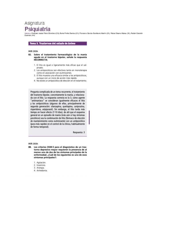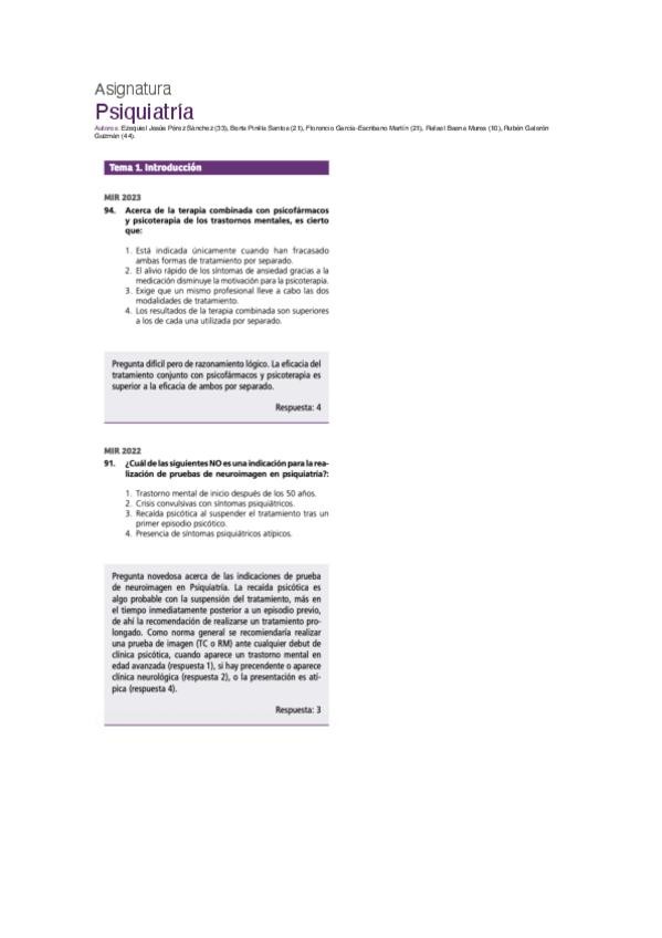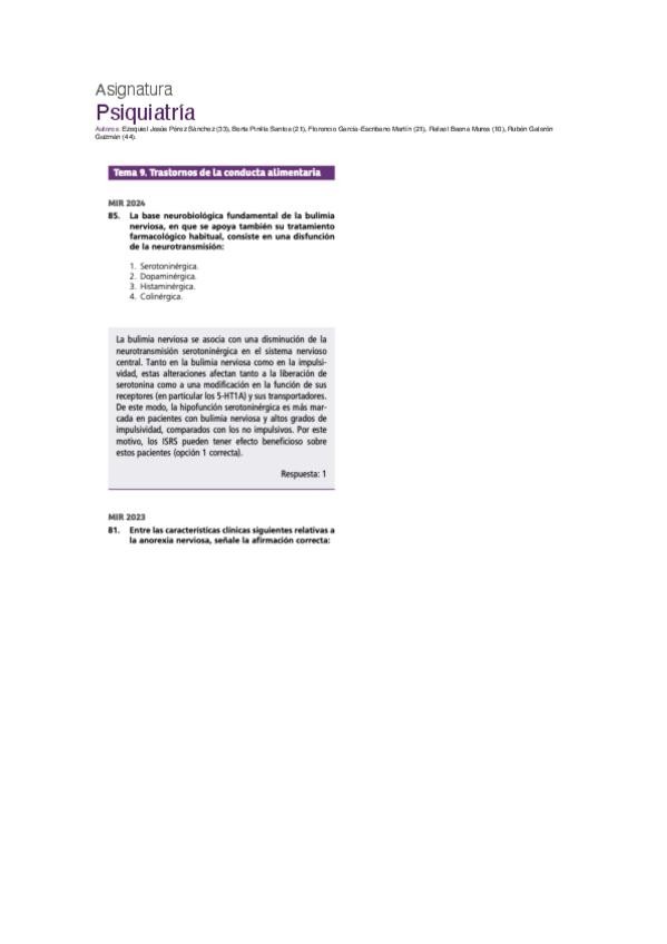 PREGUNTAS DE PSIQUIATRÍA DEL EXAMEN MIR DE LOS ÚLTIMOS 10 AÑOS.