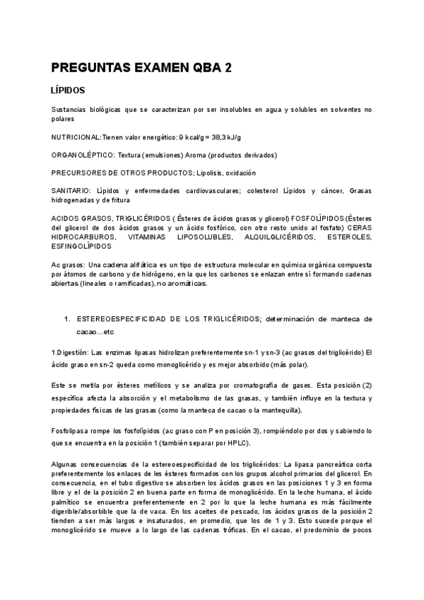 Recopilación de todas las preguntas de exámenes de química y bioquímica de los alimentos (QBA)