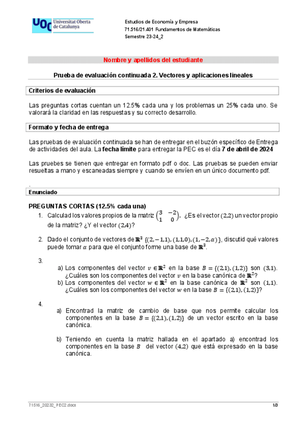 He publicado nuevos practicas de 1º Fundamentos de Matemáticas: PEC2-Vectores-y-aplicaciones-lineales.pdf