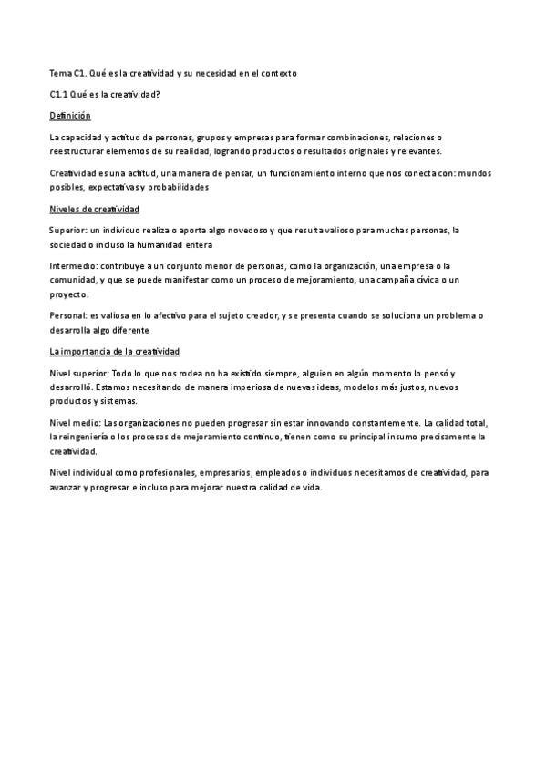 He publicado nuevos apuntes de 1º Innovación y creatividad: Apuntes-creatividad-Examen-Final.pdf