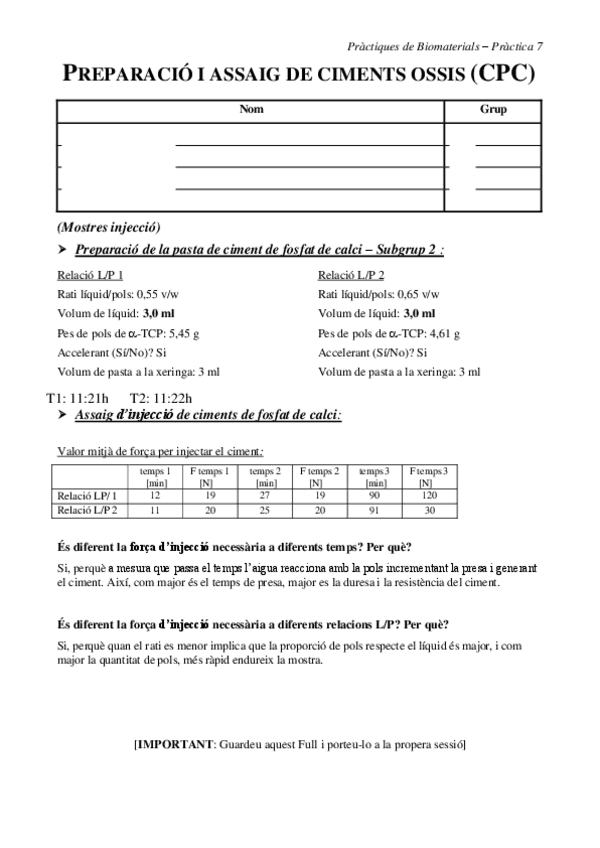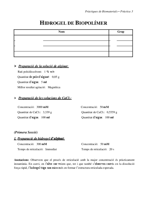 He publicado nuevos practicas de 3º Biomateriales: Pràctiques_BMT