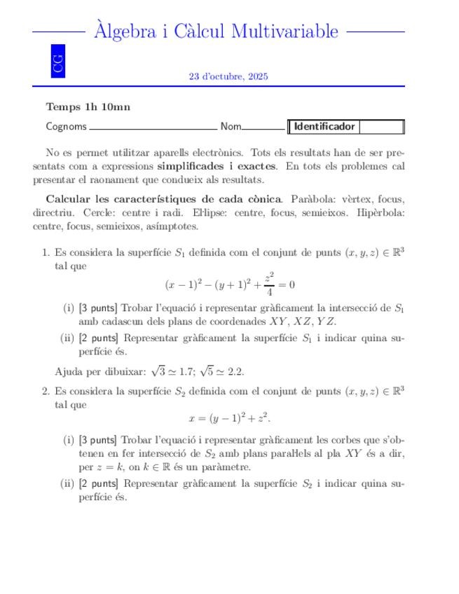 He publicado nuevos examenes de 1º Àlgebra i Càlcul Multivariable: CG2025-26-Q1-solucio-ACM.pdf