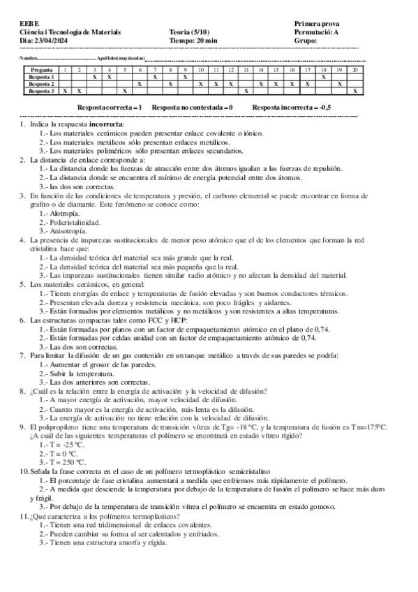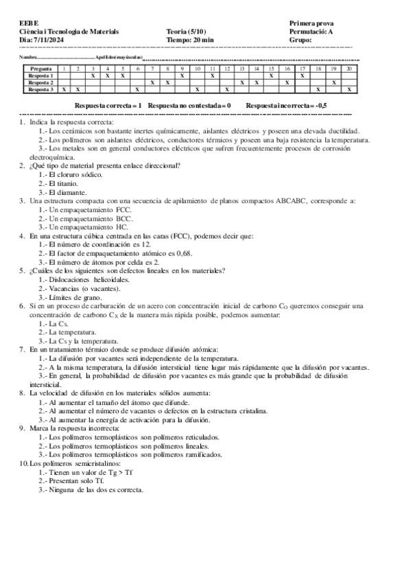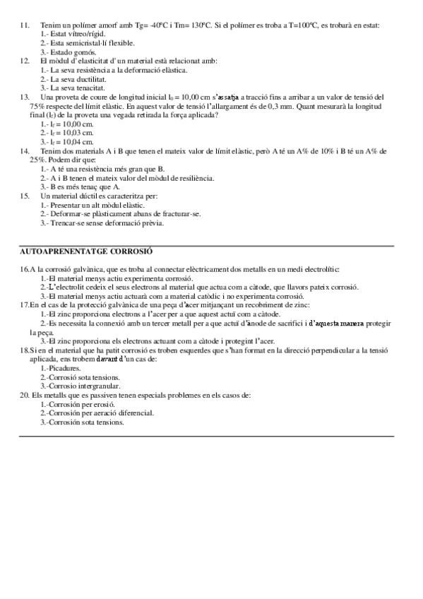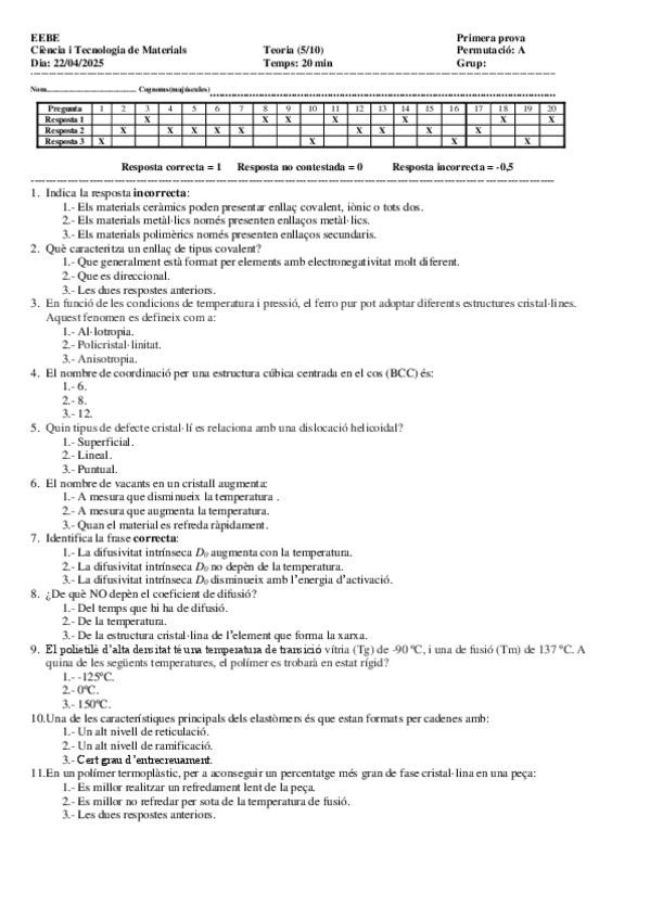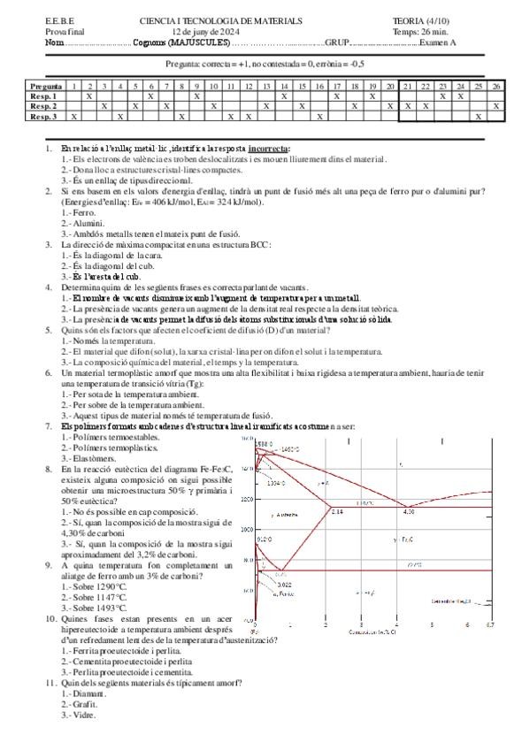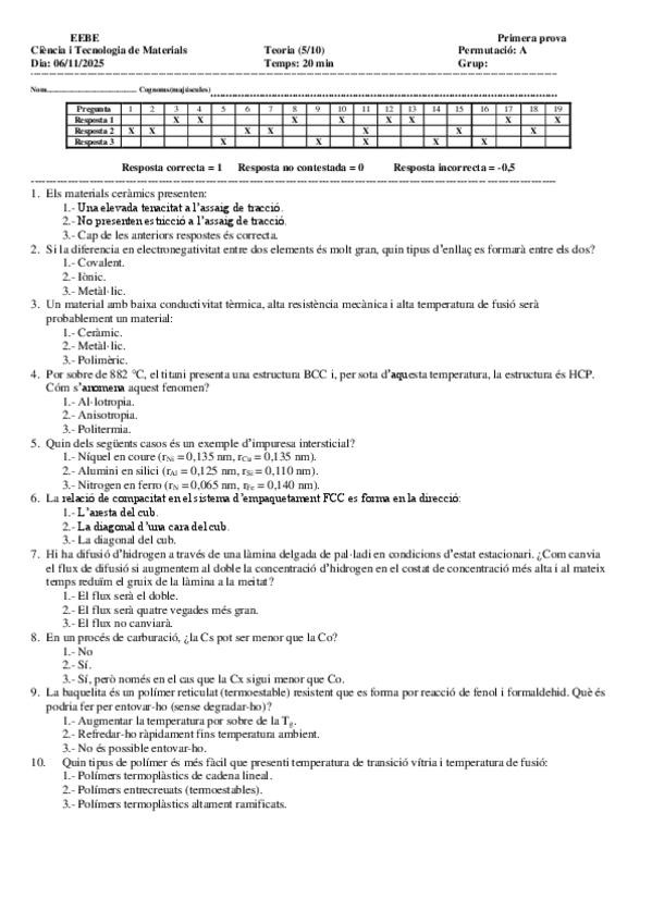 He publicado nuevos examenes de 1º Ciència i Tecnologia de Materials: CTM24-25QTPARCTOTsolucCastella-1.pdf